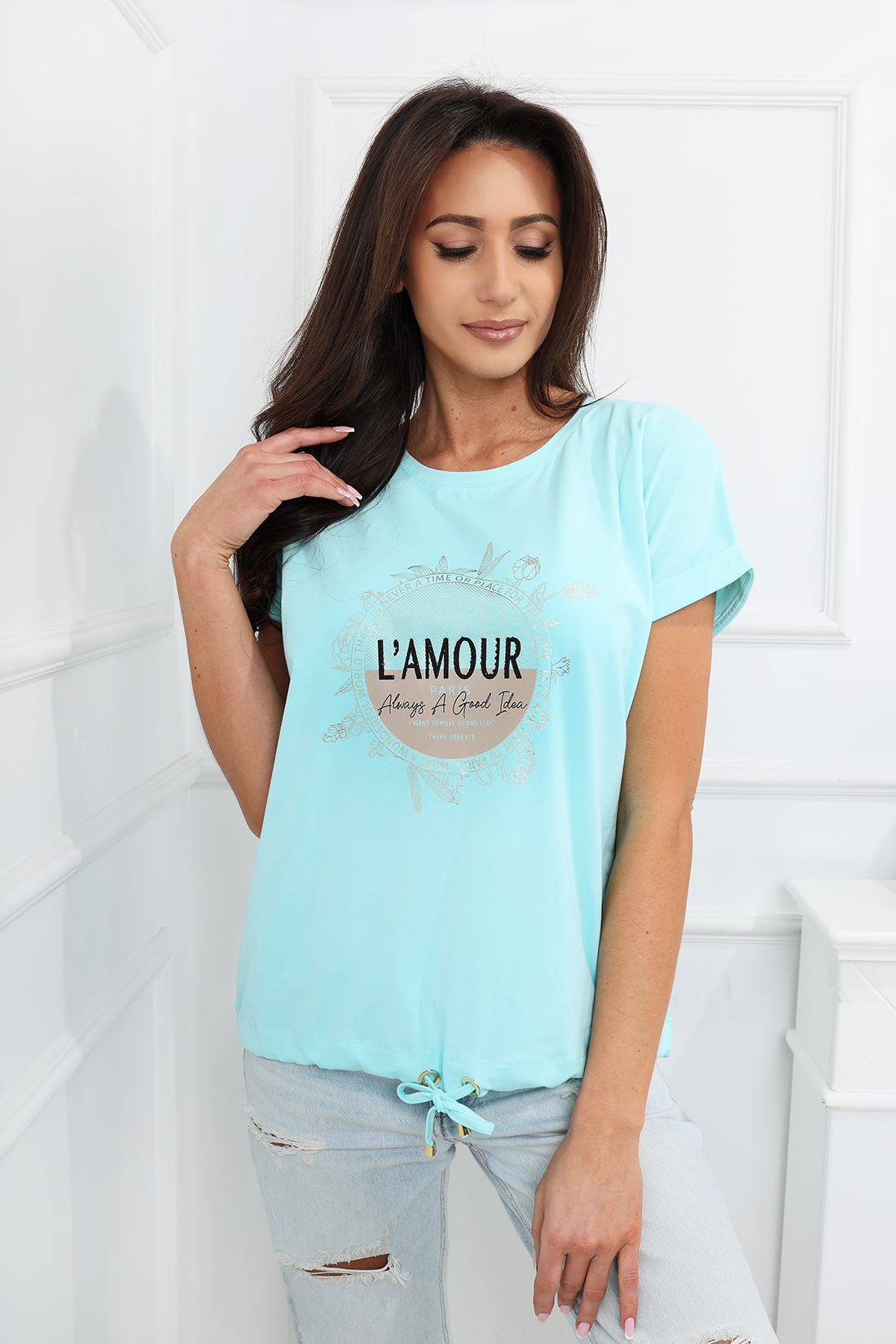 Bluzka z nadrukiem z przodu. Fason wyróżnia się sciągaczem na dole ze sznureczkiem co nadaje mu charakteru. Ten model fantastycznie zaprezentuje się zestawiony z codziennymi stylizacjami. Produkt wykonany został z wysokiej jakości materiału.