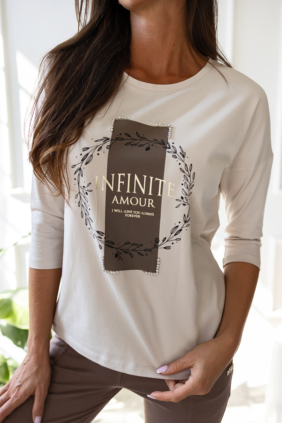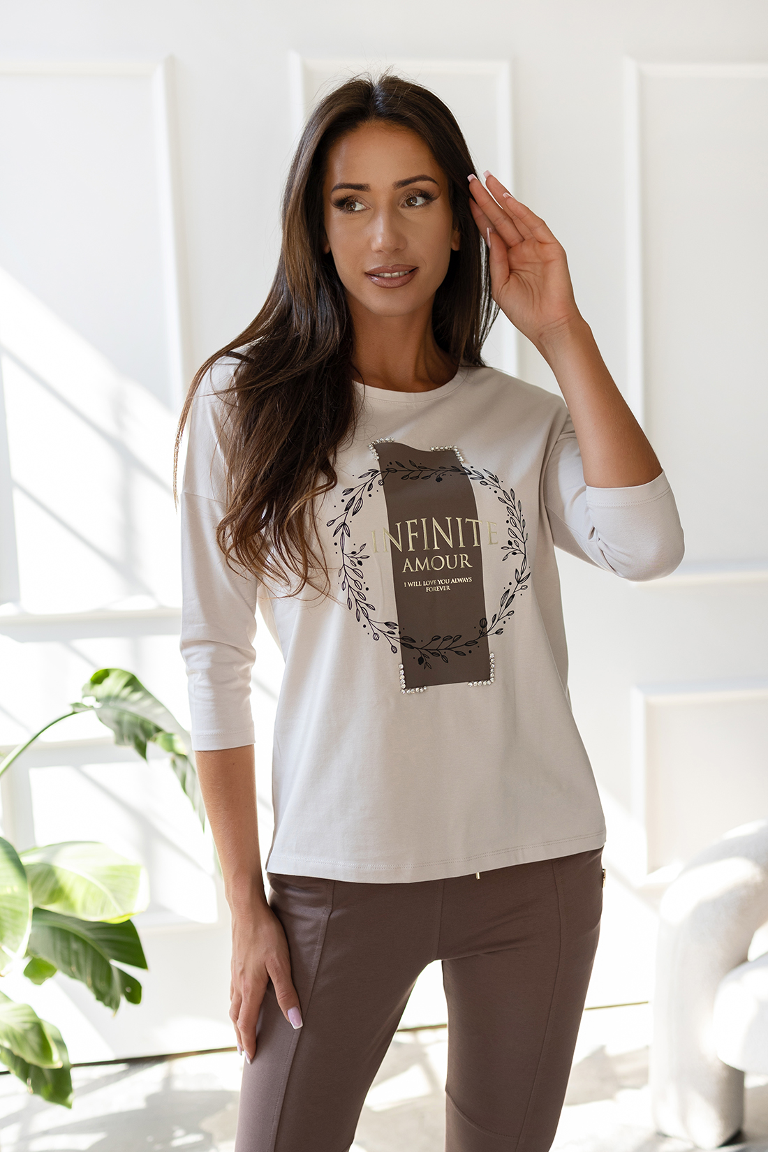 Bluzka bawełnina z nadrukiem . Ten model to propozycja idealna na co dzień! Świetnie zaprezentuje się zestawiona z szortami, a także klasycznymi jeansami. Produkt dostępny jest w wariantach kolorystycznych.
