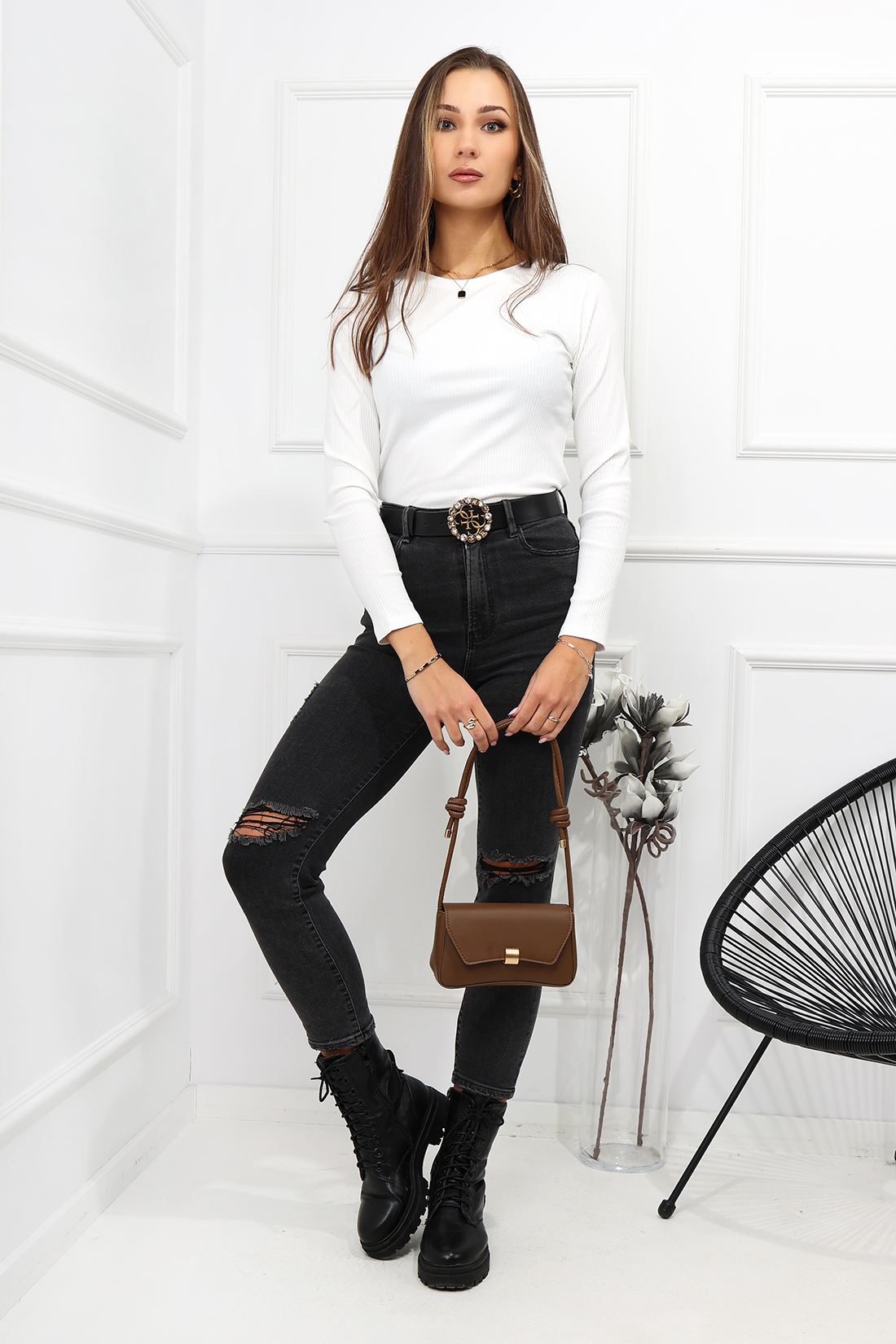 Dopasowana elastyczna  prążkowa bluzka.Zjawiskowa i w pełni kobieca  która skradnie twoje serce i będzie cudownym dodatkiem do twoich stylizacji . Idealna na każdy dzień w kobiecym wydaniu. Pasuje do spodni jak i do spódniczki . Dopełnij stylizację dodatkami i bądź modna każdego dnia.
