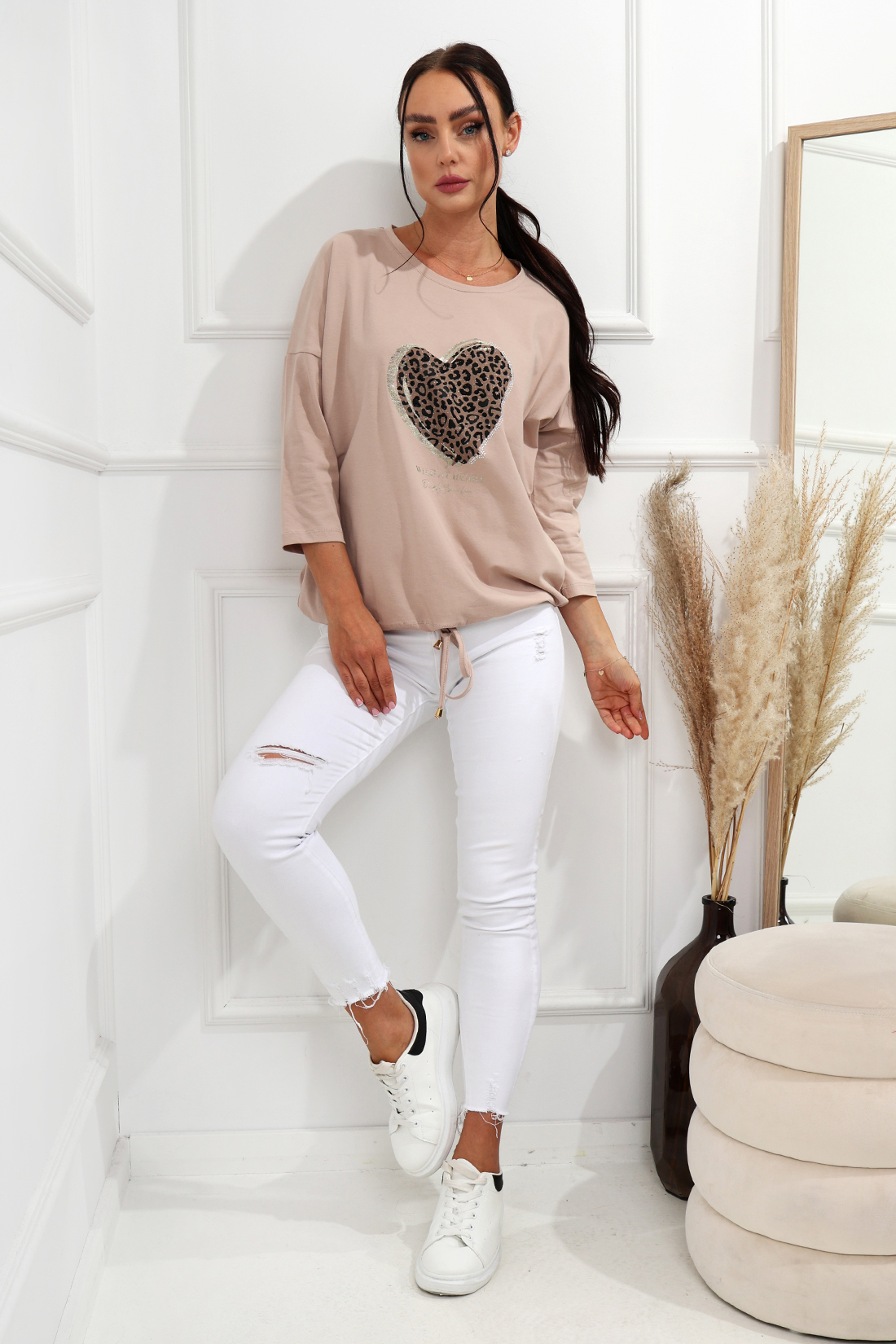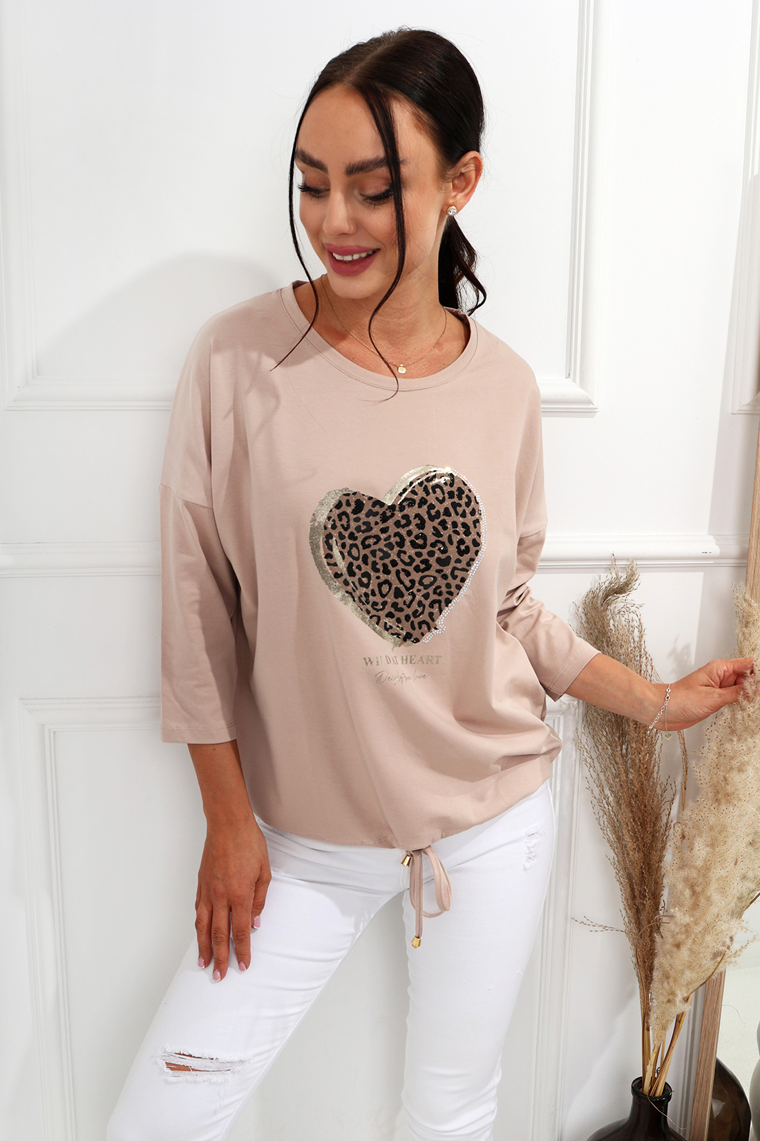 Bluzka z nadrukiem z przodu. Fason wyróżnia się sciągaczem na dole ze sznureczkiem co nadaje mu charakteru. Ten model fantastycznie zaprezentuje się zestawiony z codziennymi stylizacjami. Produkt wykonany został z wysokiej jakości materiału.