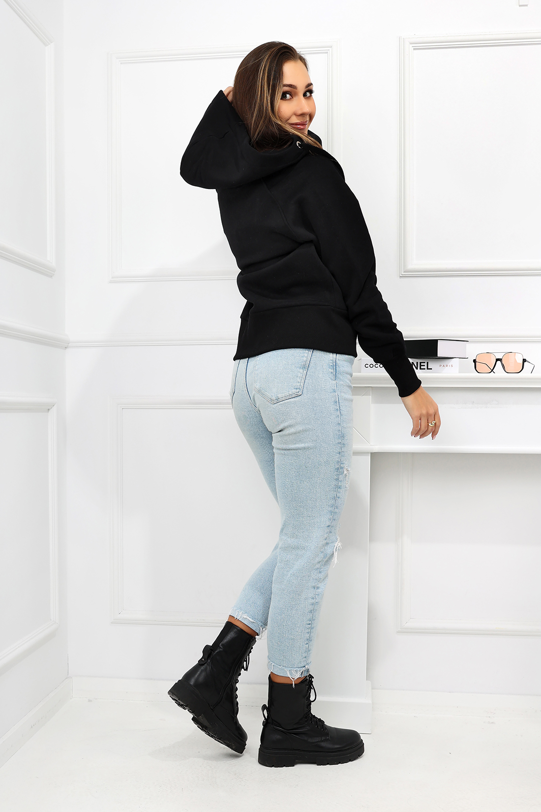 Ocieplana bluza z kapturem. Model posiada kieszeń i jest rozpinany na suwak . Stanowi idealny wybór do luźnych stylizacji na chłodniejsze dni. Bez wątpienia zaprezentuje się modnie, a zarazem zapewni wygodę i komfort w każdej sytuacji. Produkt dostępny jest w kilku wariantach kolorystycznych.
