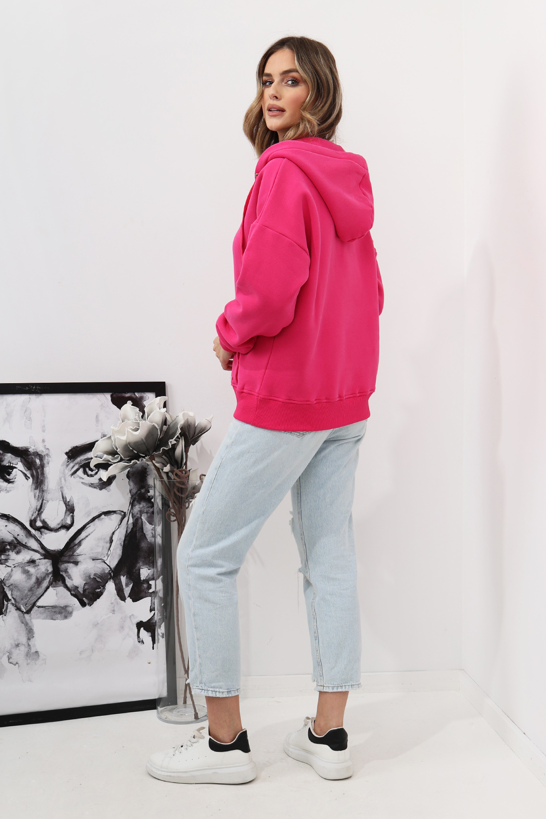 Ocieplana bluza  z kapturem. Model posiada kieszeń kangurkę . Stanowi idealny wybór do luźnych stylizacji na chłodniejsze dni. Bez wątpienia zaprezentuje się modnie, a zarazem zapewni wygodę i komfort w każdej sytuacji. Produkt dostępny jest w kilku wariantach kolorystycznych.