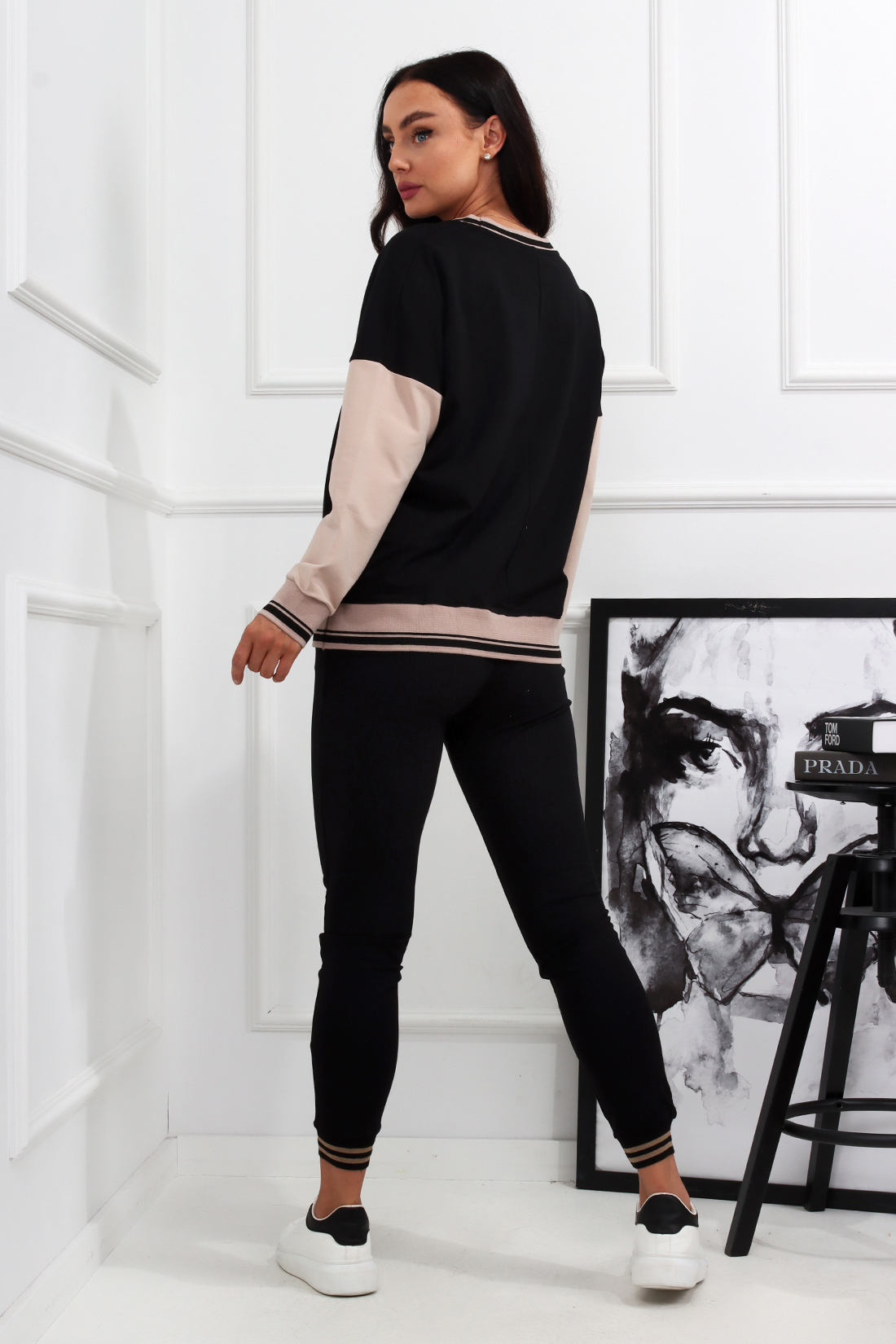 Bluza z kolorowymi rekawami i nadrukiem to doskonała baza do wygodnych stylizacji. Dół oraz rękawy wykończone zostały ściągaczami, posiada okrągły dekolt. Ta propozycja zaprezentuje się modnie, przy czym będzie naprawdę komfortowa. Skomponuj swój zestaw wybierając spośród innych modeli z naszej kolekcji .