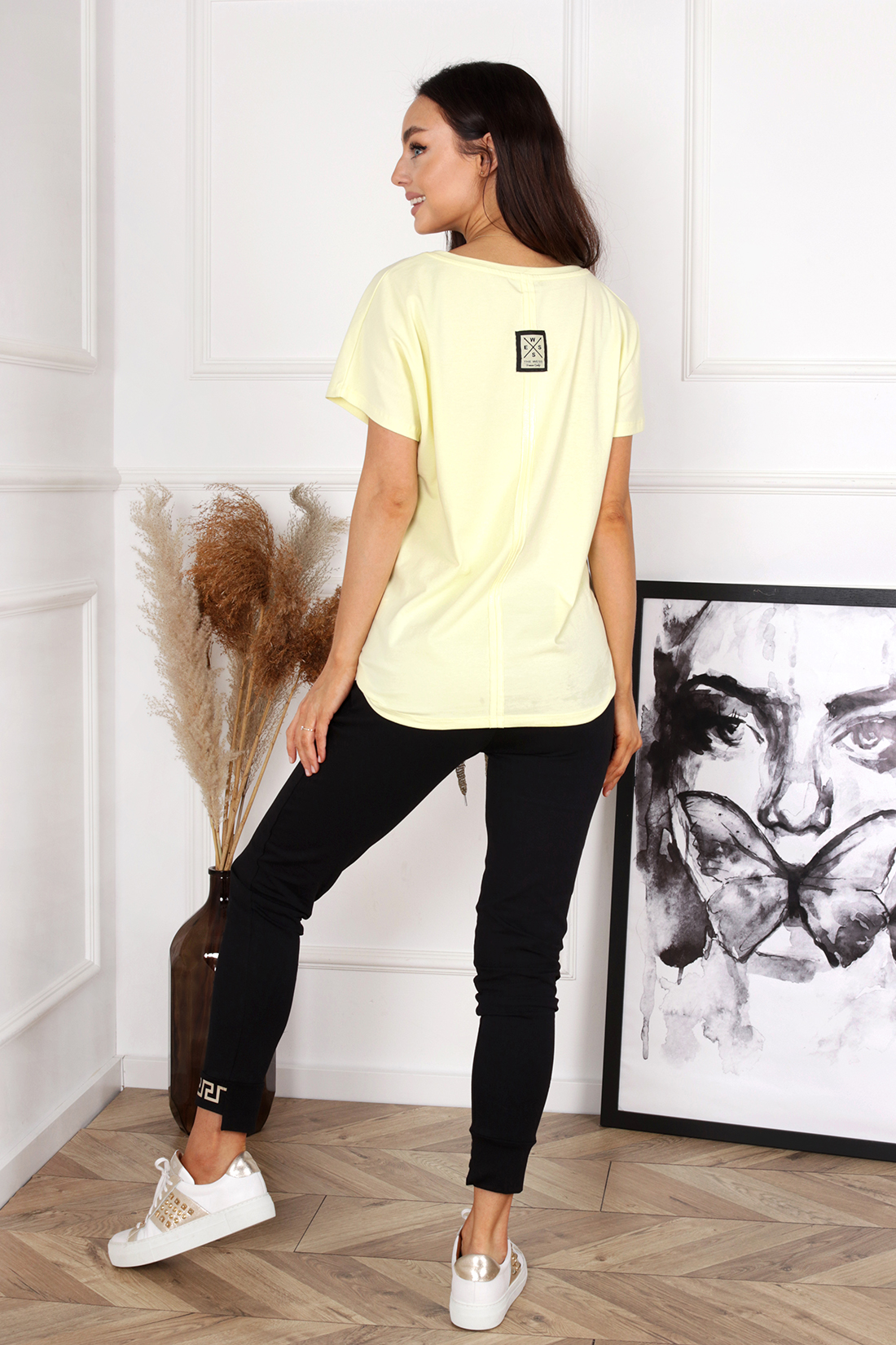 Klasyczny damski t-shirt z delikatnym dekoltem w serek. Lekki oversize’owy krój. Ponadczasowa bluzka, która pasuje do każdej stylizacji i na każdą okazję. Model wykonany z miękkiej i przyjemnej w dotyku bawełny, która zapewni komfort noszenia przez cały dzień.