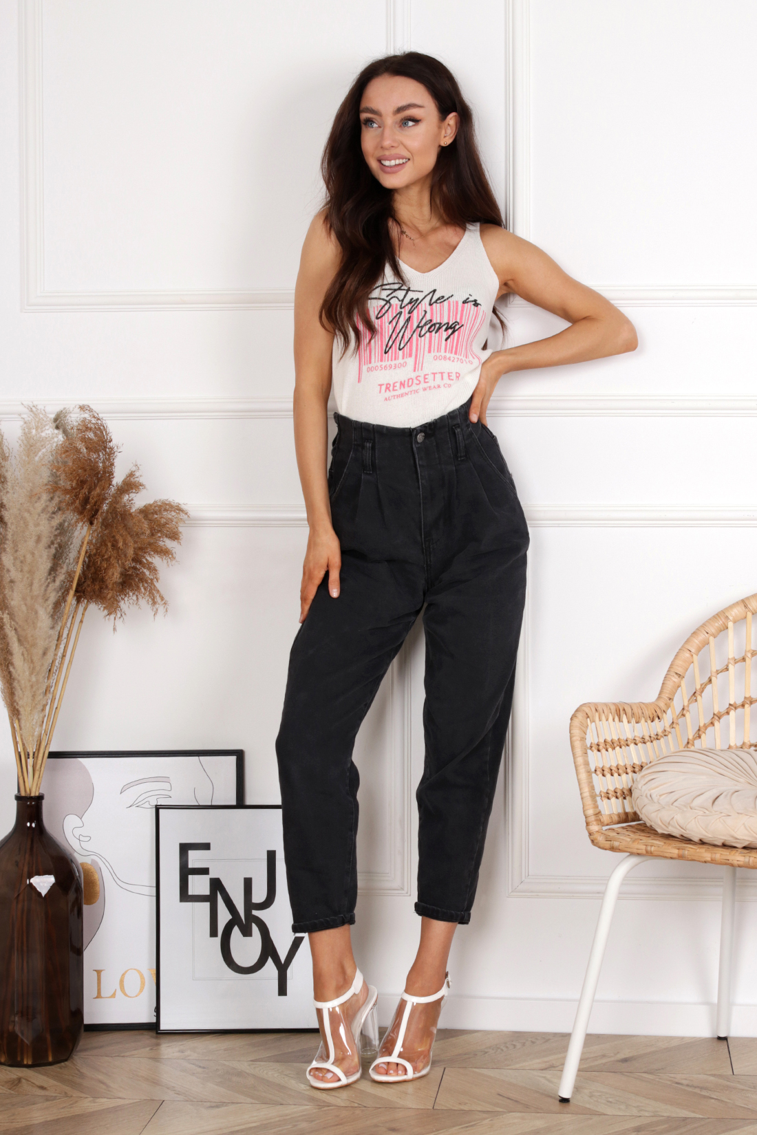 Bluzka na ramiączka z modnym nadrukiem. Model idealny na wiosnę/lato, który stanowi bazę wielu ciekawych stylizacji.