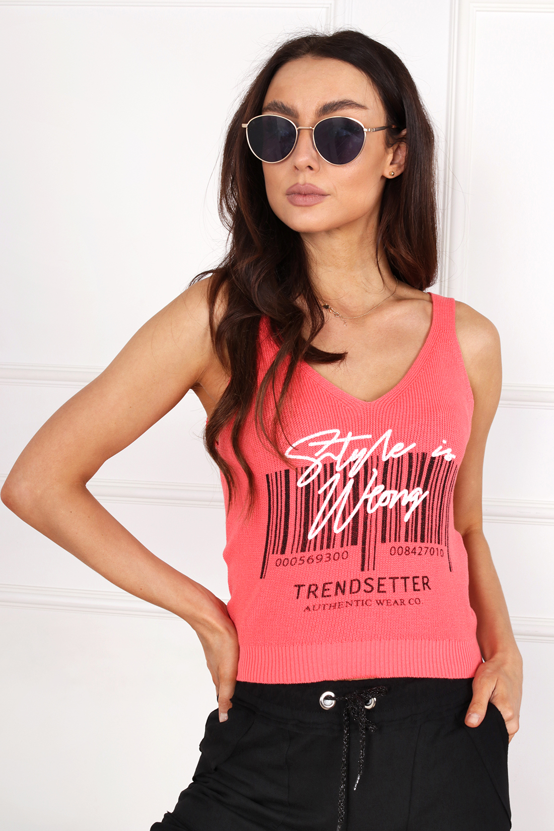 Bluzka na ramiączka z modnym nadrukiem. Model idealny na wiosnę/lato, który stanowi bazę wielu ciekawych stylizacji.