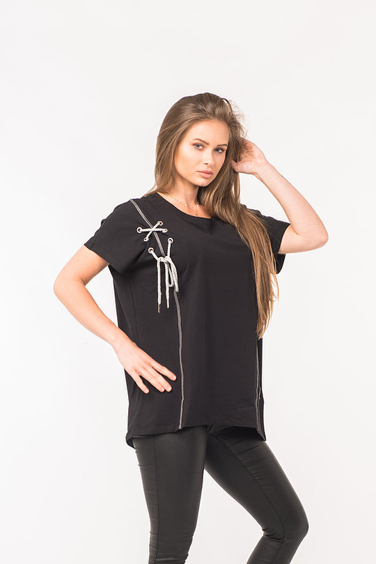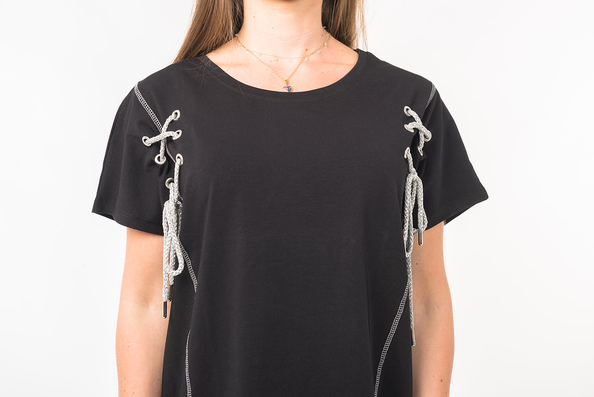 T-shirt z wiązanimi ,oversizowy świetnie dopełni stylizację, dodając im modnego akcentu.