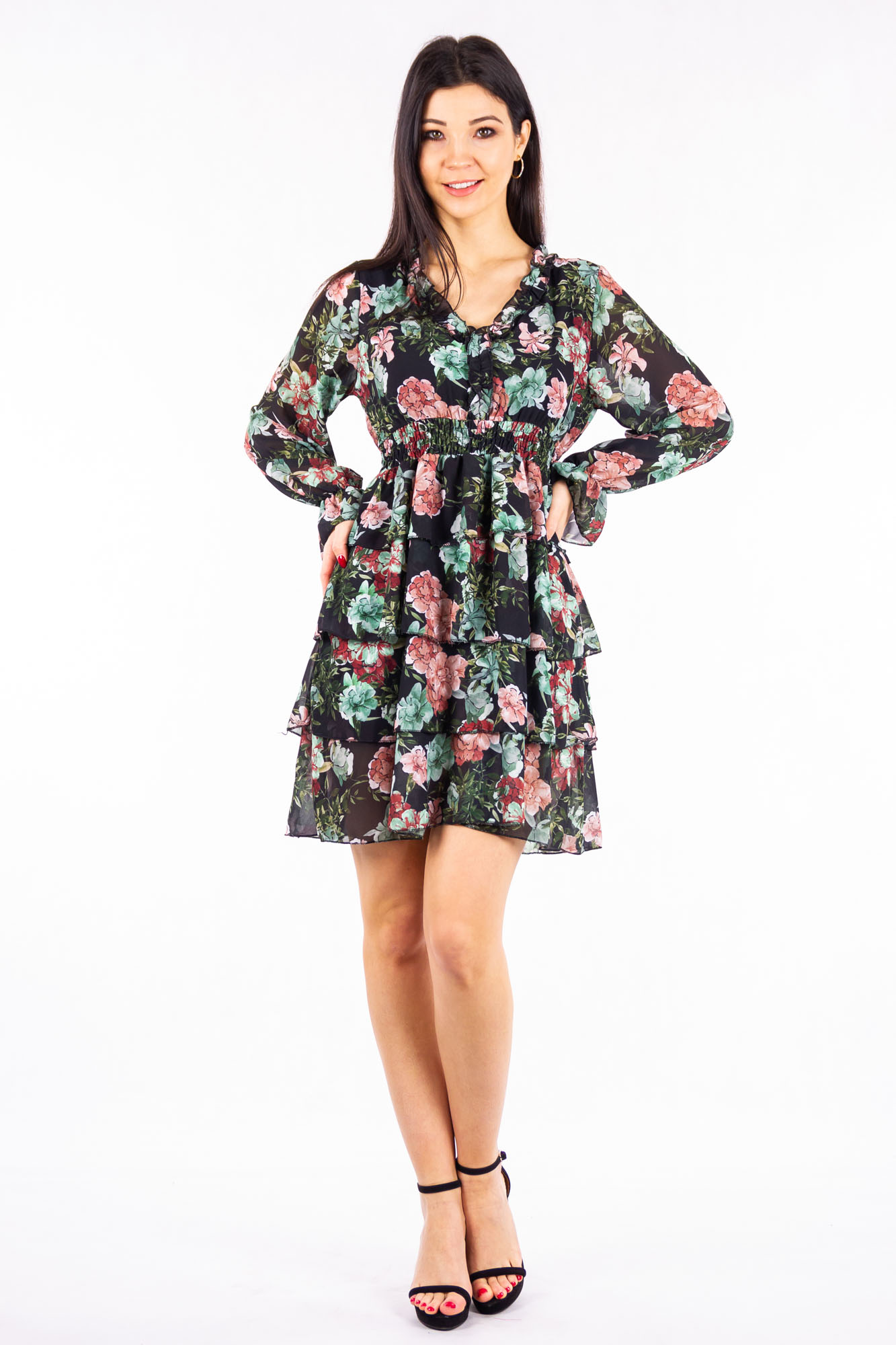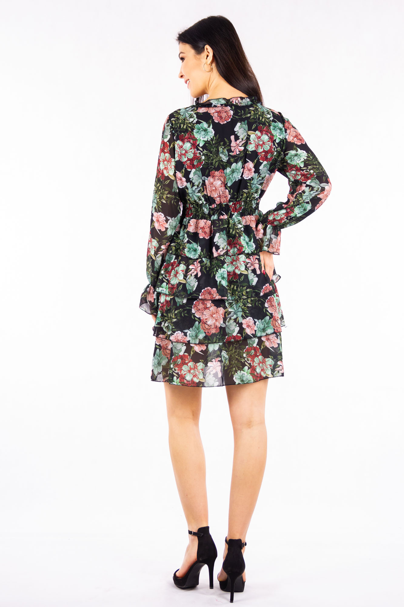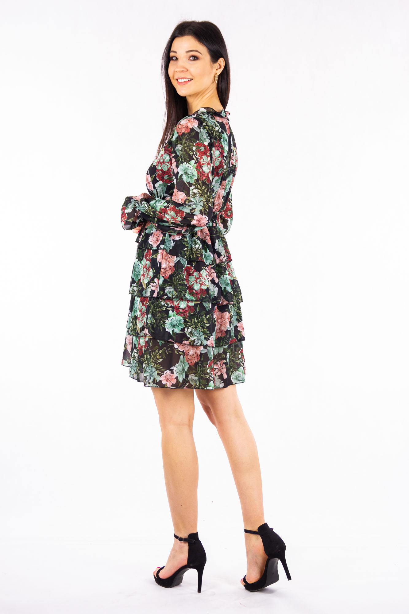 Letnia sukienka z falbankami w kwaty idelna na lato